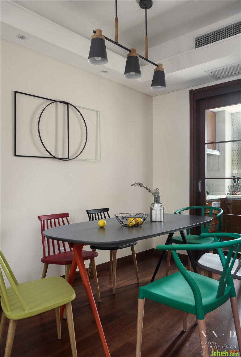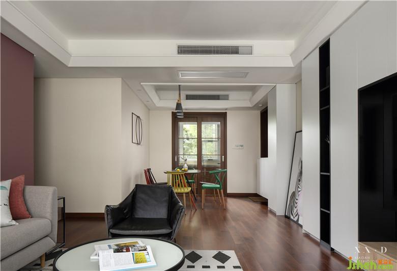 業(yè)主于日用必需的東西之外,必須還有一點(diǎn)無(wú)用的游戲和享樂,生活才有意義??蛷d是全家生活的主要場(chǎng)所,要有多樣化的功能,來應(yīng)對(duì)動(dòng)態(tài)的生活及心情。室內(nèi)設(shè)計(jì)師用一個(gè)現(xiàn)代掛墻書架作為客廳沙發(fā)背景,沉穩(wěn)而端莊。簡(jiǎn)潔的沙發(fā),搭配特色的椅子