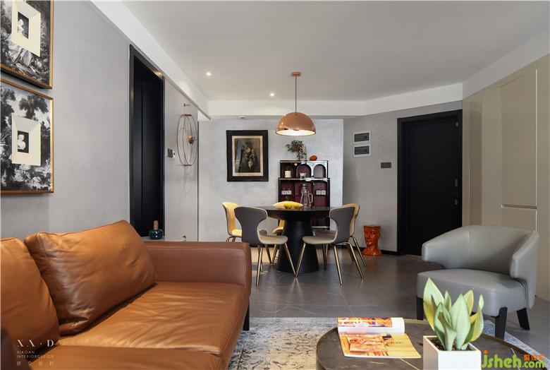 室內(nèi)設(shè)計(jì)師將主臥室的門洞開到餐廳和客廳的中間,確??蛷d的沙發(fā)背景墻長(zhǎng)度,也和墻面電視墻也能正對(duì)上。