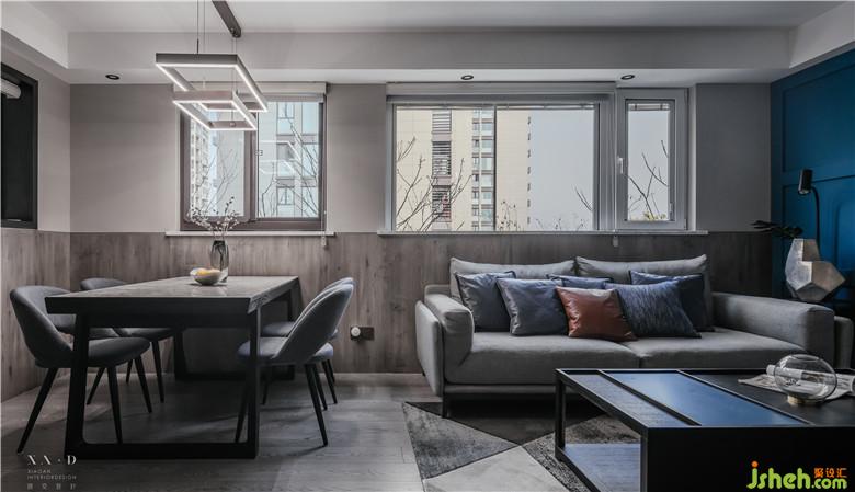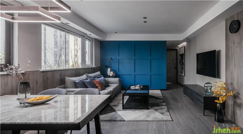 客廳與餐廳的連接讓家人之間得以擁有更多、更舒適的互動(dòng)及活動(dòng)空間。室內(nèi)設(shè)計(jì)師干凈利落的空間設(shè)計(jì),摒棄了繁冗,留給我們更多思考的空間;低調(diào)的灰色系沉穩(wěn)、大氣,在快節(jié)奏的喧囂生活中,讓人靜下心來,享受家中安靜的美好。跳躍的藍(lán)色系讓的平靜生活中帶著一絲激情。