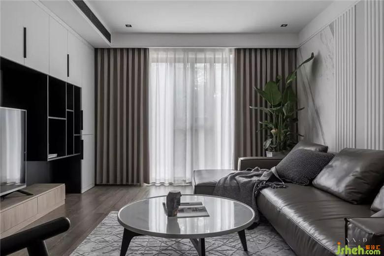 沙發(fā)背景是用石材和豎線條構(gòu)成,家里層高是常規(guī)商品房高度2.8,利用豎線條把層高視覺上下的去拉伸。