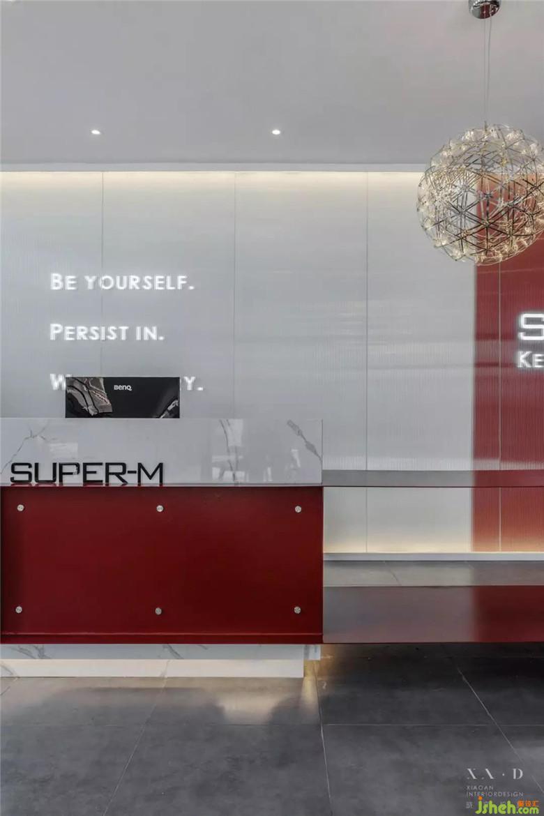 同樣被蓋住的還有SUPER-M的主題色—紅色。在主題色、LOGO、標語前加半透的藝術玻璃,其寓意是:你的個性,你的形象,你的氣質,都需要你經過自己的努力,擊碎你眼前的阻礙,才能更好的展現(xiàn)在別人面前。健身也是如此。