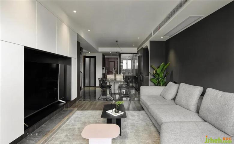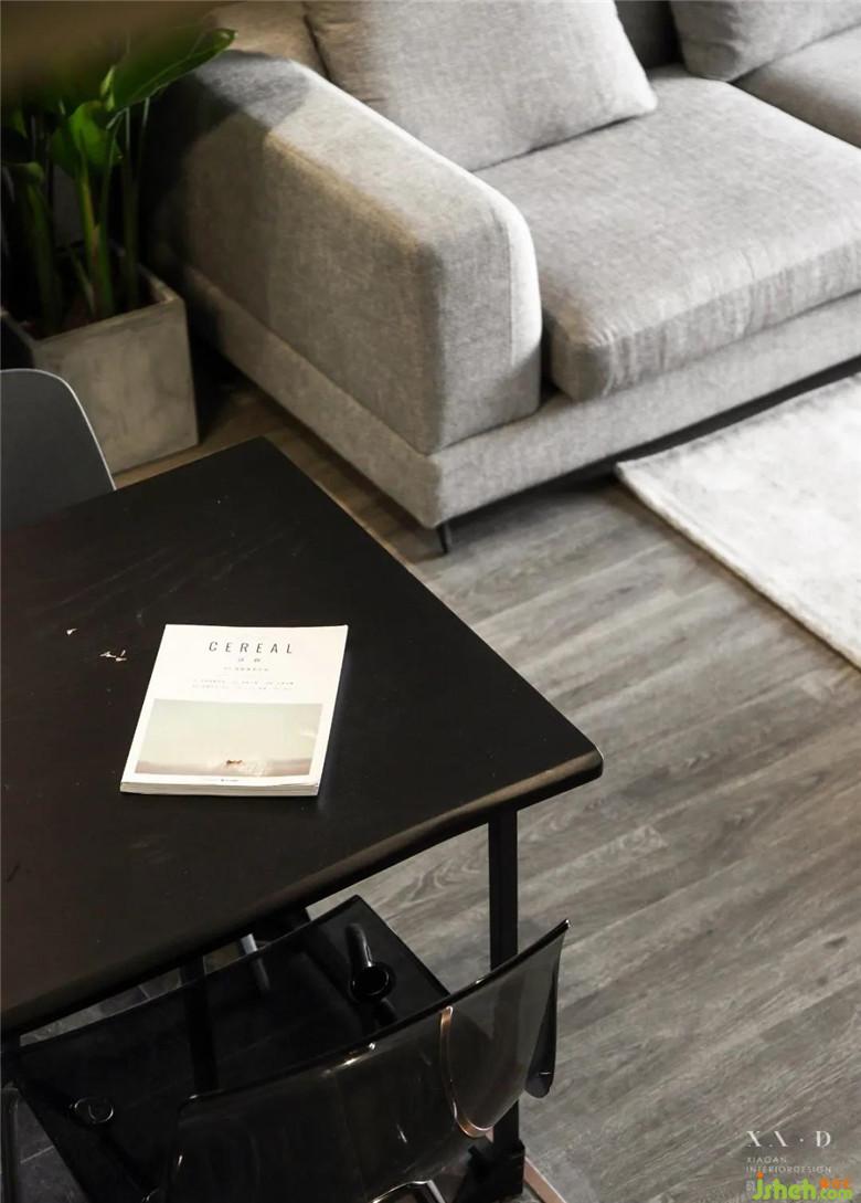 沙發(fā)與沙發(fā)椅,在空間中上演著“制衡”的哲學。樸素簡練的灰色是黑白之間的過渡,布沙發(fā)的敦實渾厚,又與相對纖薄嬌小的茶幾形成對應。