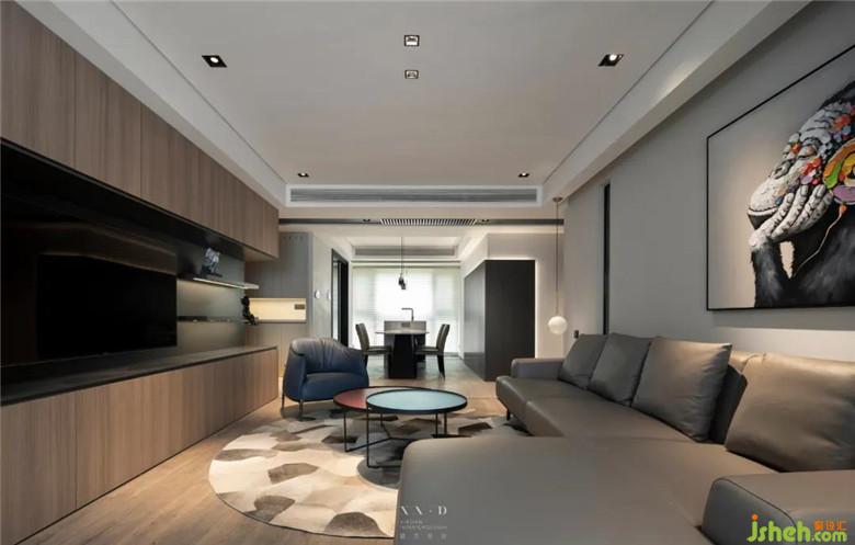 客廳中的層次感,在第一眼中便能分明地呈現(xiàn)。木質(zhì)的電視墻與地面相連,為舞步貢獻(xiàn)出“踢踢踏踏”的足音。短絨地毯鋪就一個(gè)圓形的舞池,使得音樂(lè)與呼吸都更加醉人。皮沙發(fā)的慵懶情調(diào),把簡(jiǎn)單的陳設(shè)襯托得風(fēng)情萬(wàn)種。