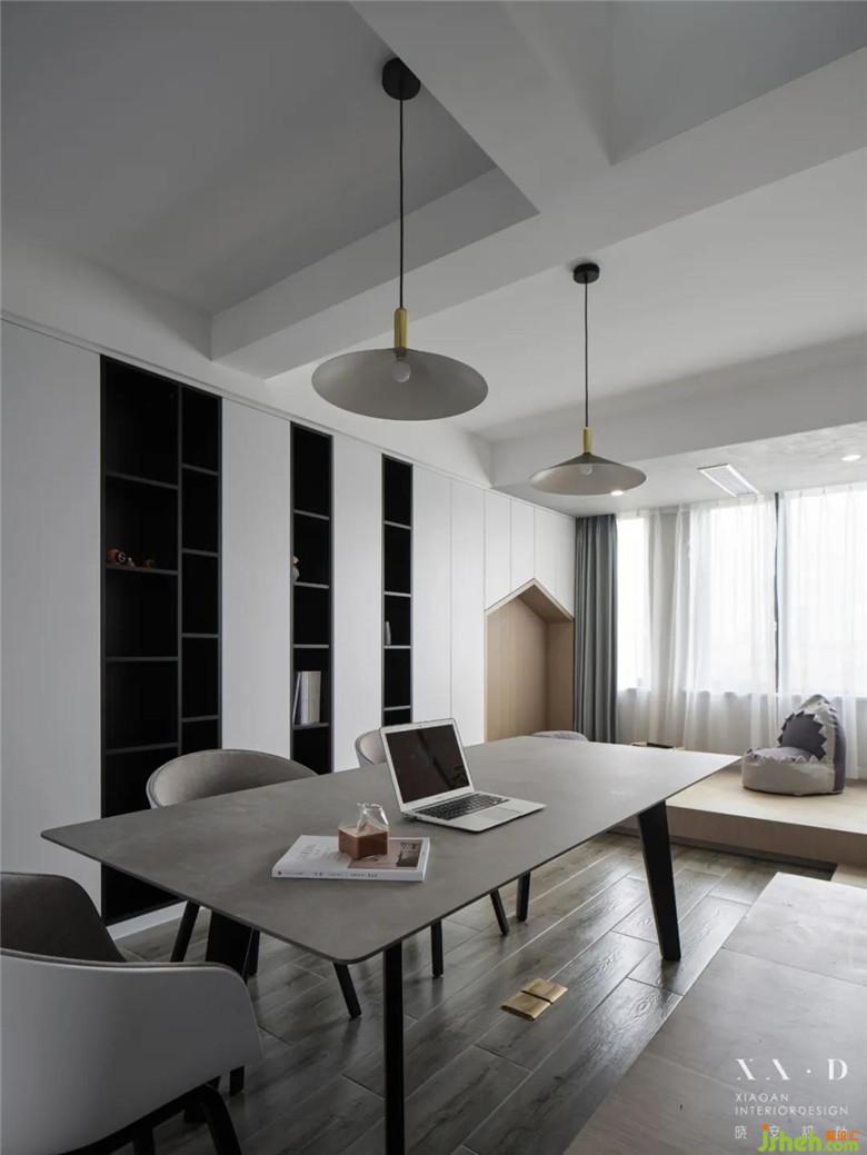我們家設(shè)計的最主要的亮點在客餐廳,因為我們夫婦都是老師,所以根據(jù)我們的需求和生活習慣,裝修公司設(shè)計師在一樓空間沒有放置沙發(fā),將原有的客餐廳用書桌、書柜以及地臺與榻結(jié)合形成的樓梯代替了,這樣我們的孩子在地臺玩耍的時候,我們就可以一邊工作一邊照顧他。