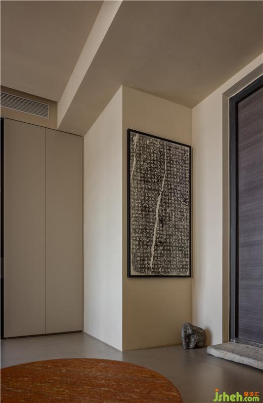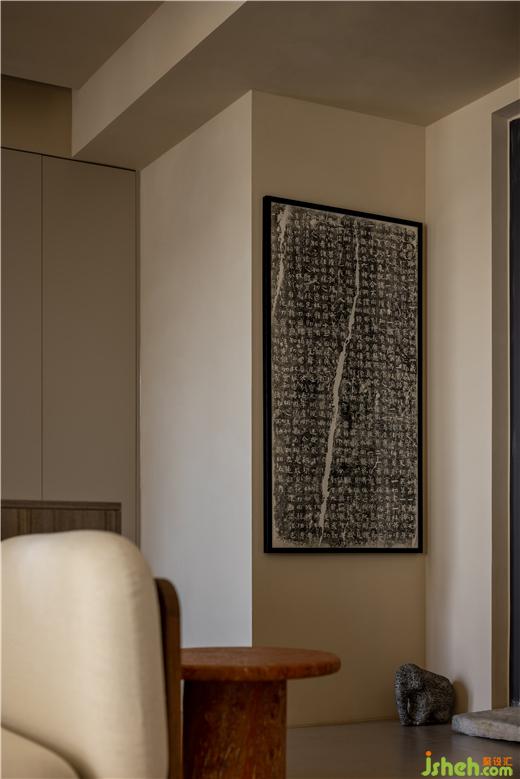 門口的東山之石、兩側(cè)的青石象、墻上的碑拓,都是男主人的收藏,運(yùn)河與岸裝修設(shè)計(jì)有的是機(jī)緣巧合下淘來(lái)的老舊物件,有的是想方設(shè)法才覓得的心頭好,第一眼看到它們就覺得很有眼緣,這些合乎心意、情有獨(dú)鐘的物品,構(gòu)成了獨(dú)一無(wú)二的玄關(guān)。