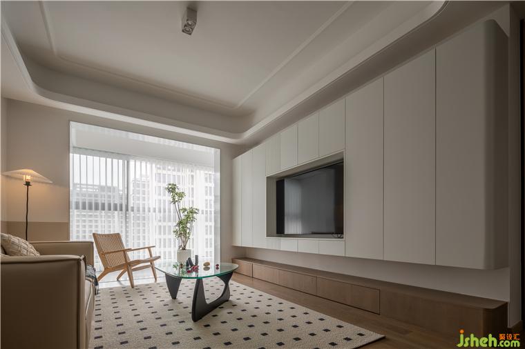上下鏤空的電視背景與左側(cè)不對稱設(shè)計(jì)的豎紋,在視覺上拉伸空間。平靜舒緩的白色,美的云筑家裝設(shè)計(jì)讓客廳顯得更整潔且具有呼吸感。地板、原木柜、休閑單椅都保持著材質(zhì)本身的色澤,呼應(yīng)了空間整體的調(diào)性。