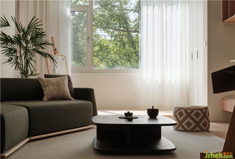 家裝設(shè)計(jì)借結(jié)構(gòu)關(guān)系迎接日升日落的變幻之美,透過窗框視角保留自然意境,讓綠意呼應(yīng)空間內(nèi)部的木元素,營(yíng)造置身自然的輕盈松弛狀態(tài)。構(gòu)建地臺(tái),再次擴(kuò)展自然調(diào)性,省略冗余陳設(shè),以借景手法聯(lián)通內(nèi)外,為精神世界空出一處靜享區(qū)域。