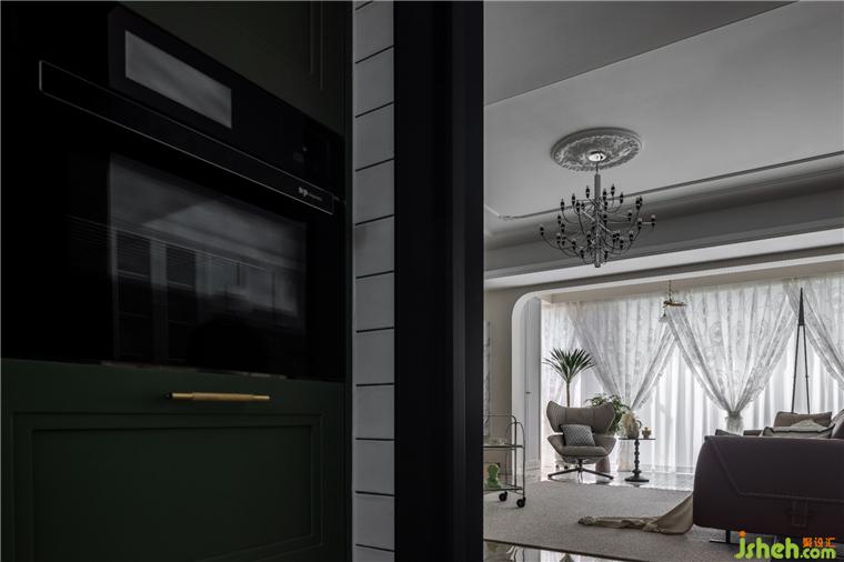 “喜歡敞亮的、能容納特別多家人一起做飯的廚房,真的很有家的感覺?!盪型布局廚房完美切割了各個功能區(qū),天鵝港豪宅設計讓空間變得合理有序。以白色挑動墨色與森綠,色塊間搭配的比例恰到好處——明朗,自如,又詮釋著法式的優(yōu)雅。