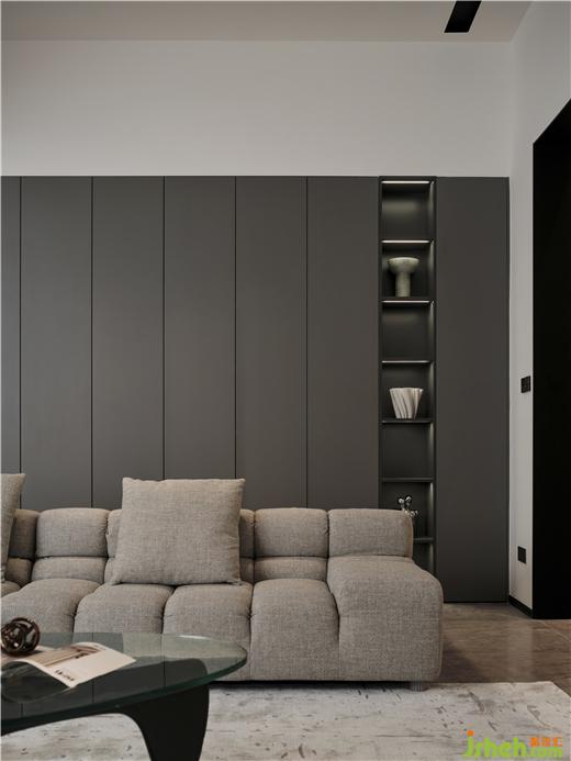 再現(xiàn)線條意趣,以隱藏式手法重新演繹極簡格調(diào),開合之間,串聯(lián)了儲物功能與審美情趣,鹽城私宅裝修設(shè)計拓展了實用空間的靈活性、美學(xué)性、聯(lián)動性,毗鄰柔和布藝構(gòu)成了“前景為動,后景為止”的空間序列。