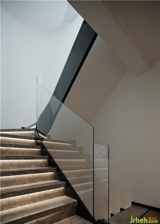 純粹的白,隨樓梯的轉(zhuǎn)折動態(tài),訴說著一望而知的空靈氣韻,鹽城私宅裝修設(shè)計營造出仰視時刻的美學(xué)意境。重而不抑的邊界,搭配全透明玻璃扶手,最大化凸顯出階梯石材的高貴氣質(zhì),點亮一層層光幕,指引步履,釋放流動的美好。
