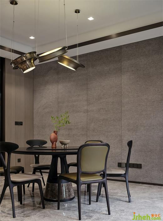 家和萬(wàn)事興,“和”就是建立和諧家庭氛圍的基礎(chǔ),以圓桌形態(tài)拉近了每個(gè)家庭成員的距離,別墅裝飾選用簡(jiǎn)潔有特色的餐椅,讓團(tuán)聚用餐的親朋好友自在對(duì)話?,F(xiàn)代感造型的吊燈,優(yōu)化了空間照明,同時(shí)展現(xiàn)出藝術(shù)感。