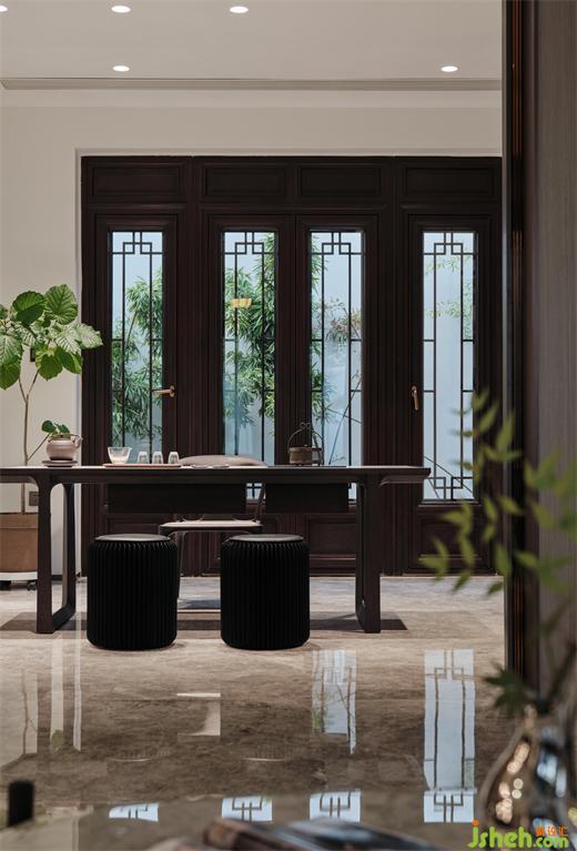 曲徑通幽處,無言詩意美。一排架,一幅畫,使空間的縱深匯集于遠(yuǎn)景,透過紋理的修飾,別墅裝飾將植物的生命力納入茶盞之形,分次品茗,細(xì)嗅清香,契合了精神向往。