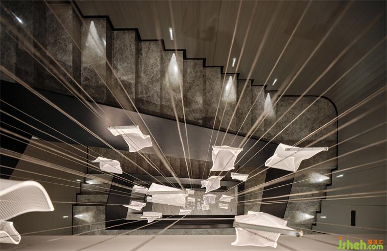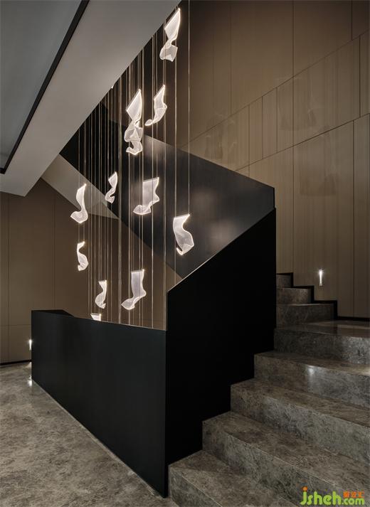 點狀光體,以疏密有道的形式,顯露出不同場域的特質(zhì),引入海涵書卷的概念,借用簡筆形態(tài)綻放靈動的序列感,拉伸了上下結(jié)構(gòu)的深度,豐富了轉(zhuǎn)折區(qū)域的趣致。