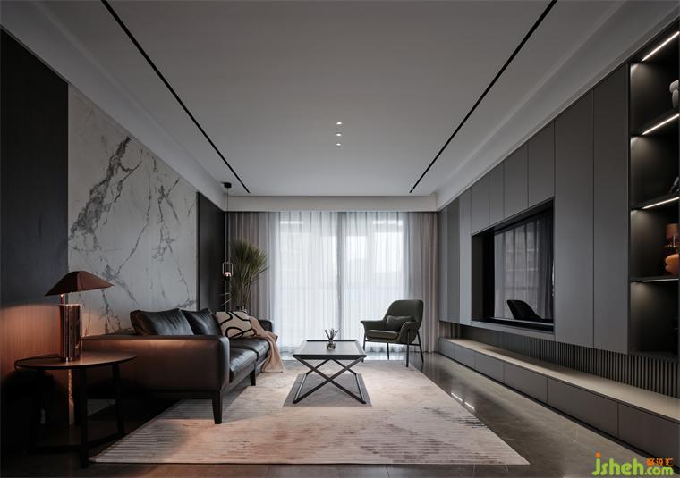 妙用暗色調(diào),闡述空間的故事感,鋪灑白調(diào),與自然天光共同營造舒適感,映襯出皮革的溫潤、石材的清冽、金屬的高貴,奏響一場關(guān)于時尚美學的設計旋律。大平層裝修設計簡約布局,分區(qū)明確,交匯曲線之美與直線之力,構(gòu)筑出多重社交場景。