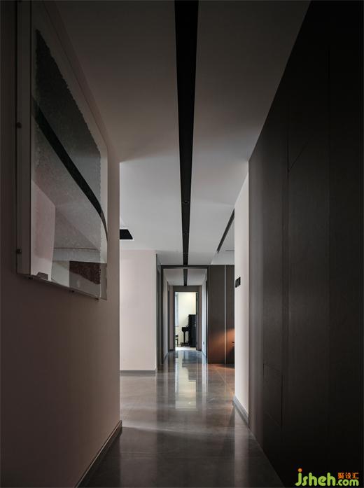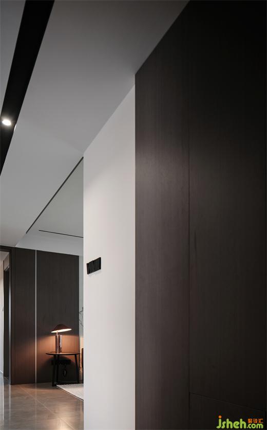 天花的寬面黑線,強(qiáng)調(diào)了多重縱深感,有斷有續(xù),使得左右兩側(cè)的場域不知不覺地靜下來,醞釀舒怡氣韻,由淺入深地觀賞,再逢深淺相間的節(jié)奏美感,讓生活可期。