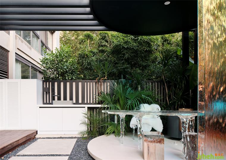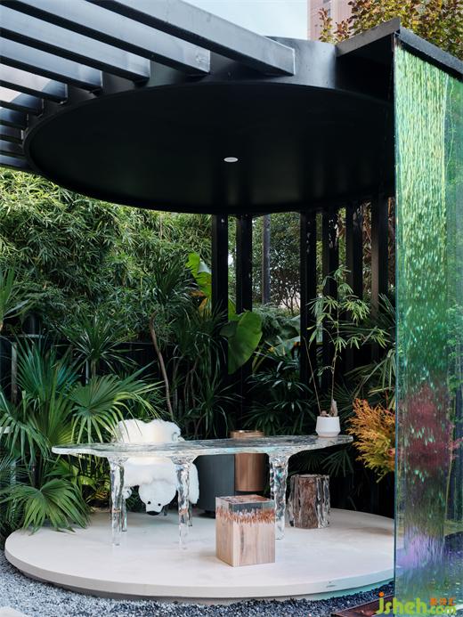 閑庭寂寂,曲沼漪漪,天色交替,氛圍即轉(zhuǎn),保留茂盛枝葉形態(tài),復(fù)式裝修設(shè)計(jì)重構(gòu)室外景觀意趣,建構(gòu)休憩場域,一進(jìn)一出,一開一合,仿佛回歸森林,與動(dòng)物、水流、浮云、鳥鳴產(chǎn)生無限共振。The leisure court is quiet, the quang bog is flowing, the sky is changing, the atmosphere is changing, the luxuriant branches and leaves are retained, the outdoor landscape interest is reconstructed, and the rest area is constructed. Once entering and leaving, once opening and closing, it feels like returning to the forest, producing infinite resonance with animals, water flow, floating clouds and birdsong.