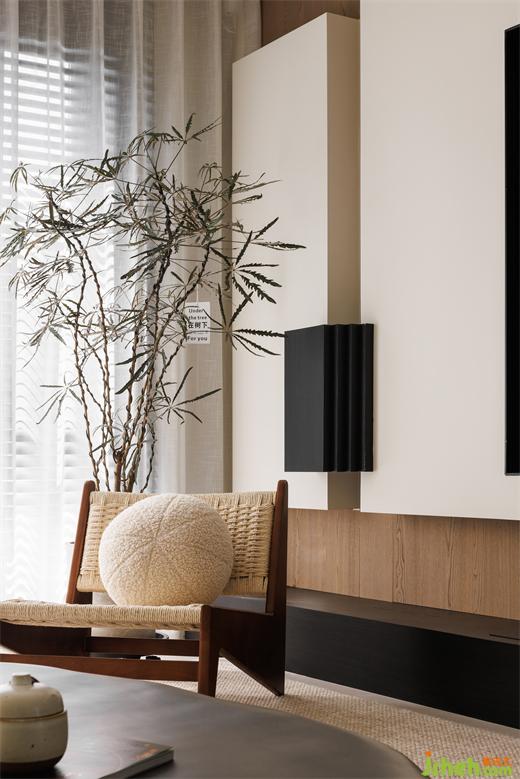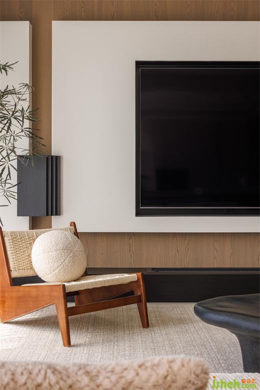 想要營(yíng)造溫馨氛圍,藤編材質(zhì)無(wú)疑是一個(gè)不可或缺的元素,天然的藤編單椅與地毯為空間帶來(lái)松弛感,同時(shí)提升美學(xué)氛圍。