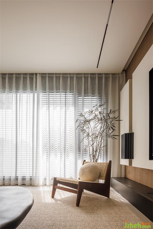 簾動(dòng)微風(fēng)起,為空間增添朦朧的美感。陽(yáng)光透過(guò)縫隙,灑下斑駁的光影,客廳瞬間被柔和的光暈包圍。家中的空氣似乎也沾染了這股溫柔,讓人心生寧?kù)o,舒適自在。