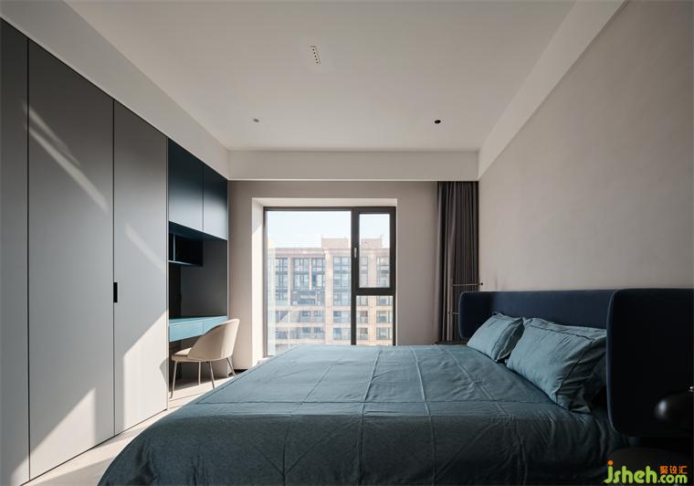 于簡(jiǎn)練的硬裝骨架之上,加入定制柜設(shè)計(jì)。色彩上,采用與整體風(fēng)格相協(xié)調(diào)的灰調(diào),營(yíng)造和諧統(tǒng)一的視覺(jué)效果;功能上,又對(duì)柜體進(jìn)行更加人性化的分區(qū),衣物儲(chǔ)納和學(xué)習(xí)區(qū)域有序分開(kāi),保證空間的整潔美觀。
