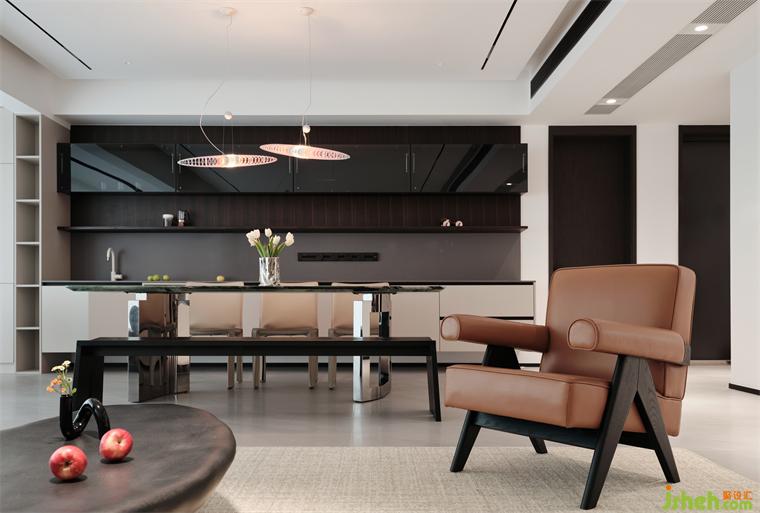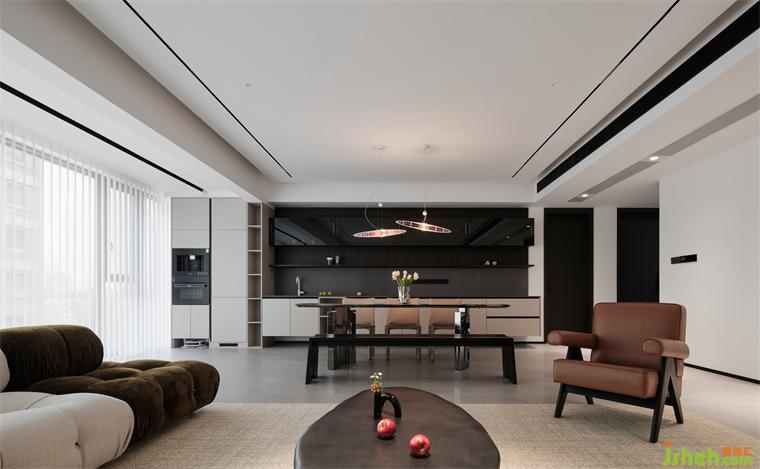 客餐廳以黑白對(duì)比色彩為基底,凹凸有致的立面設(shè)計(jì)增強(qiáng)空間層次感,創(chuàng)造出既和諧統(tǒng)一又各具特色的空間布局。