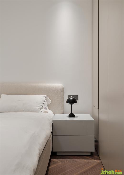 大平層設(shè)計(jì)次臥運(yùn)用純凈的色彩,留白美學(xué)讓整個(gè)空間沉浸在靜謐柔和的氛圍里,相比于繁復(fù)的裝飾風(fēng)格,這種簡(jiǎn)約裝修更能觸動(dòng)人心,帶來(lái)清爽、舒適的感受。
