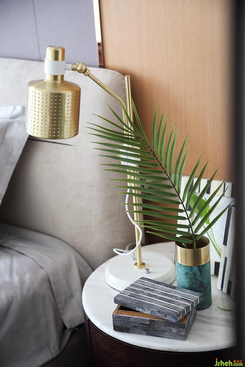 床頭燈的金屬光澤和綠植交相呼應,自然而驚艷,仿佛生活處處充滿了小驚喜。