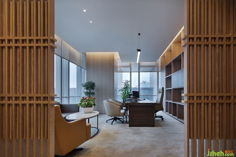 總經(jīng)理辦公室,大門以木制線條為造型,遠(yuǎn)遠(yuǎn)看去自成一道景,待走近后才發(fā)覺其中別有洞天。