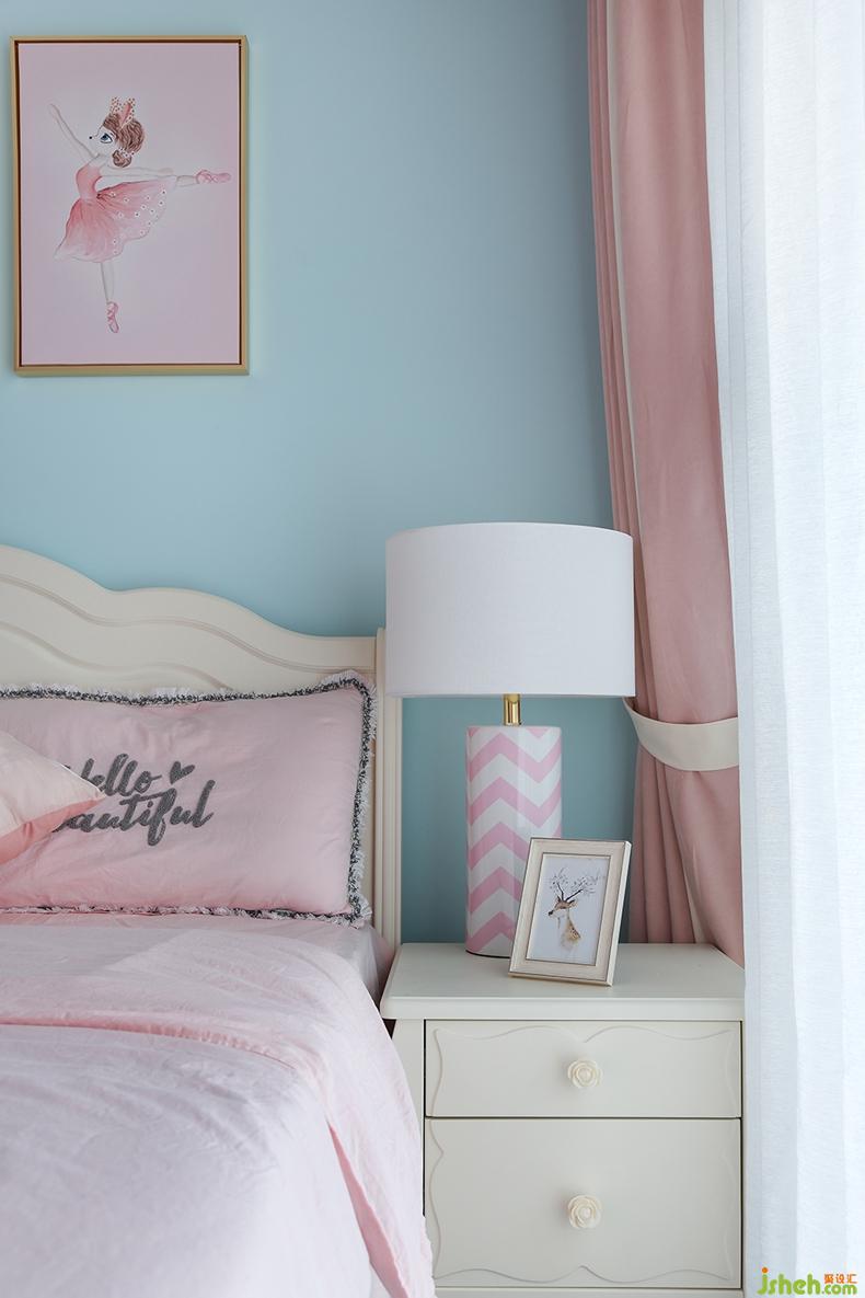 幼女著新裳,低眉畫(huà)紅妝,業(yè)主對(duì)于兒童房也做了精心布置。百粉天藍(lán)的搭配讓整個(gè)房間顯得明亮又清新,幾何體造型穿插在空間里,簡(jiǎn)潔又大方。