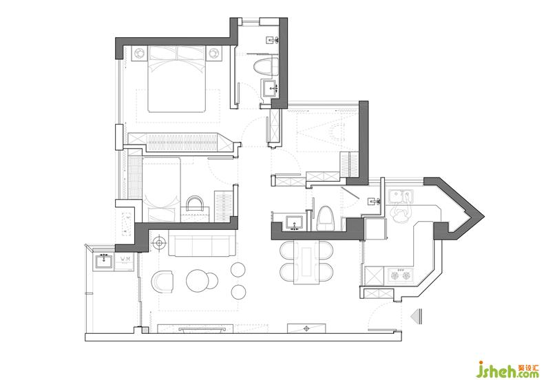 走進(jìn)廚房,幾何造型的線條感,搭配高級(jí)灰的色調(diào),高級(jí)又舒適。忽的想起鄧麗君的《又見炊煙》,夕陽(yáng)有詩(shī)情,黃昏有畫意。突然腦洞大開,不自覺的浮現(xiàn)伉儷情深的畫面,我為你洗手做羹湯,你為我添妝描眉。