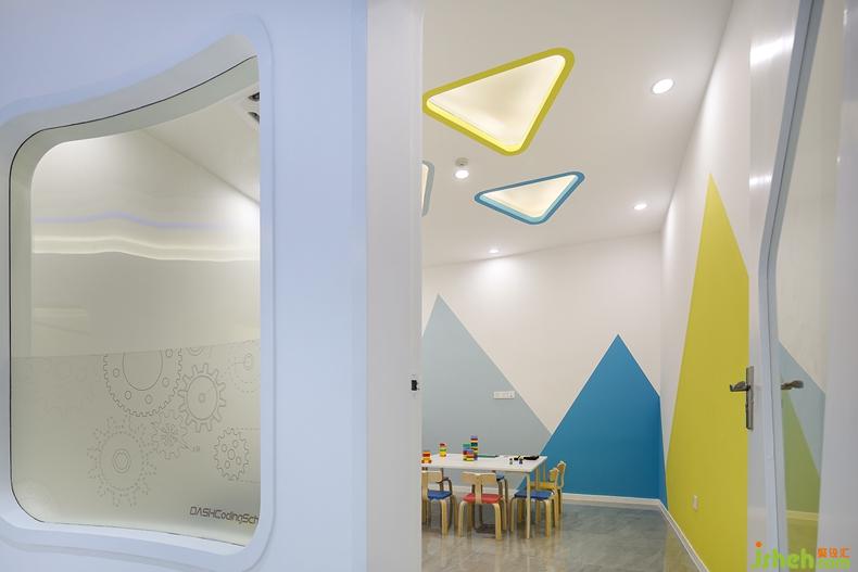 在孩子的眼中,世界上的每件事物都充滿著神奇的色彩,他們對(duì)新鮮事物也有著蓬勃的求知欲。在每間教室的墻壁上,都有不一樣的幾何圖案,讓空間變得生動(dòng)有趣。設(shè)計(jì)公司