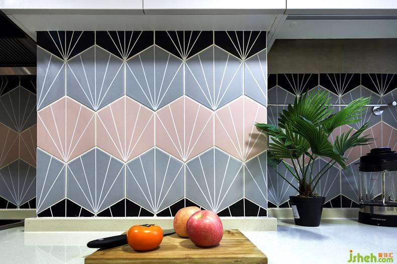 L型廚房,半開放的空間,沒有轉(zhuǎn)角的尷尬,簡(jiǎn)單又實(shí)用。中間選用五彩不斑斕的墻磚,不一樣的紋理,是溫度與色澤的點(diǎn)綴,怡然自得。