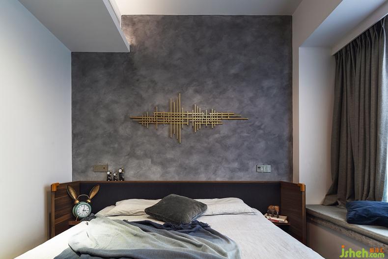咖色窗簾與光線倒映出的光影、深木色地板與床頭柜的巧妙連接、主臥背景墻的霧氣似的灰度中閃出一抹金色,似心臟的悸動(dòng)……目光所及之處都是個(gè)性。