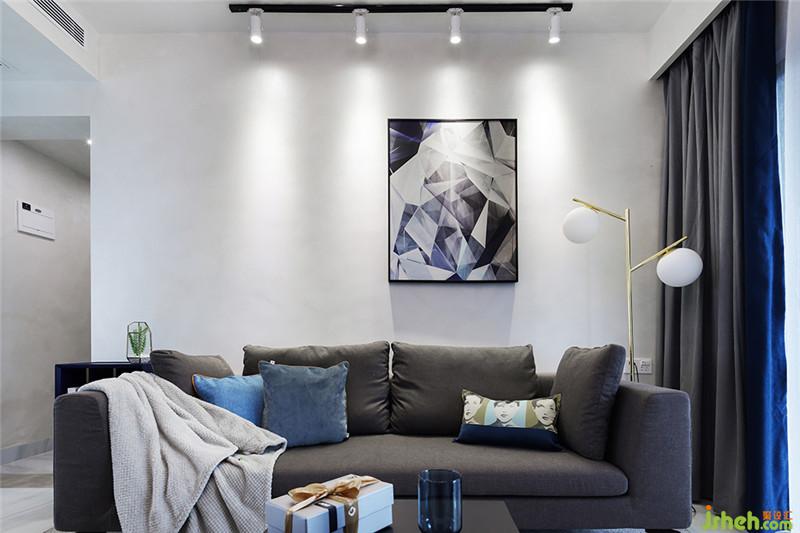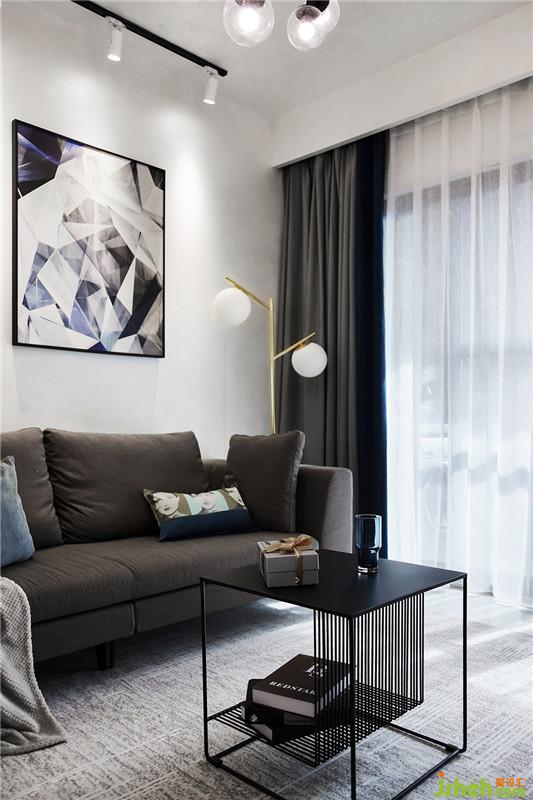 深灰色布藝沙發(fā)搭配黑色鐵藝茶幾、金屬元素邊幾,再配以一副藝術(shù)掛畫裝飾白色墻面,巧妙地將生活形態(tài)與視覺美學(xué)相融合,整個(gè)空間盡顯溫馨又不失大方。