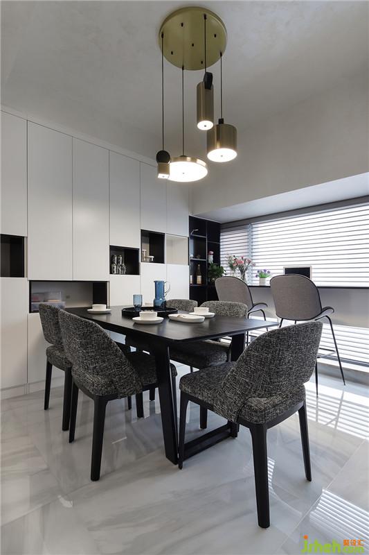 整潔干凈的餐廳,將美感和收納發(fā)揮到了極致。餐邊柜采用一柜到頂?shù)脑O(shè)計(jì),不浪費(fèi)每一寸空間,統(tǒng)統(tǒng)變成收納區(qū)域!中間的開放式收納區(qū)則可隨手放置一些物品,十分靈活。