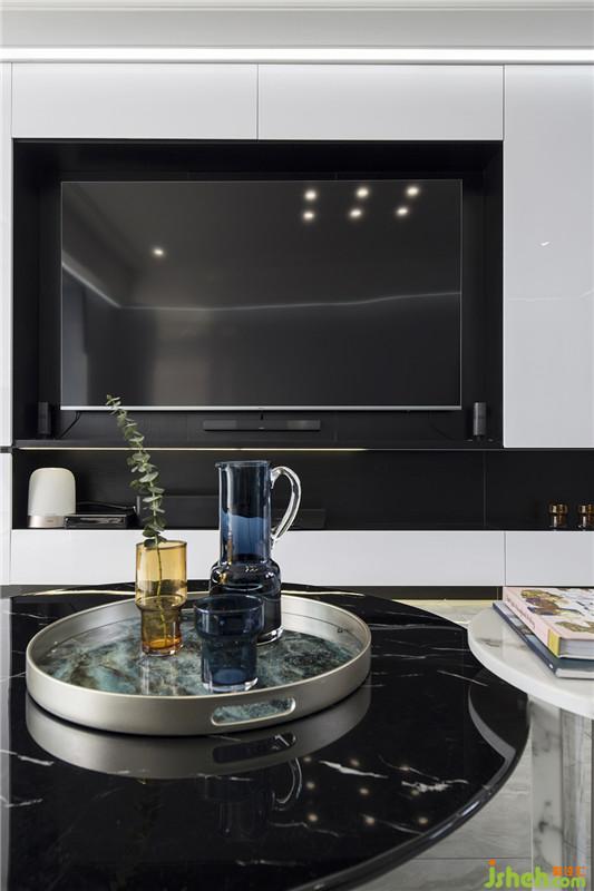烤漆材質(zhì)的電視柜有著如鋼琴般亮麗的光澤,與大理石的光滑如脂相得益彰,完美利用戶型特點(diǎn),讓空間看起來(lái)更敞亮、清爽。