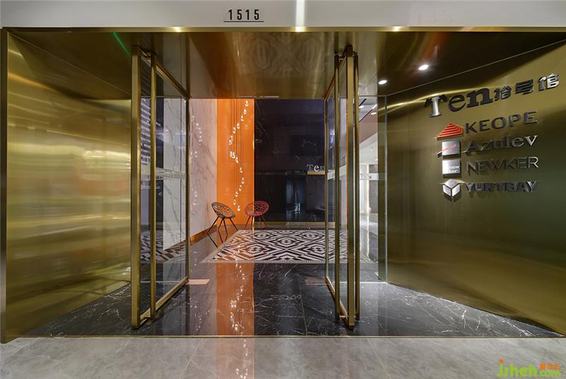 如果說(shuō)建筑是一種空間文化,那外立面就是這種文化最直觀的呈現(xiàn)。展廳設(shè)計(jì)時(shí),外立面也是重點(diǎn)考慮區(qū)域,在確保整體美觀的同時(shí),還特別注重材質(zhì)的運(yùn)用。比如入門處選用的金色不銹鋼材質(zhì),讓美感因光而增色。