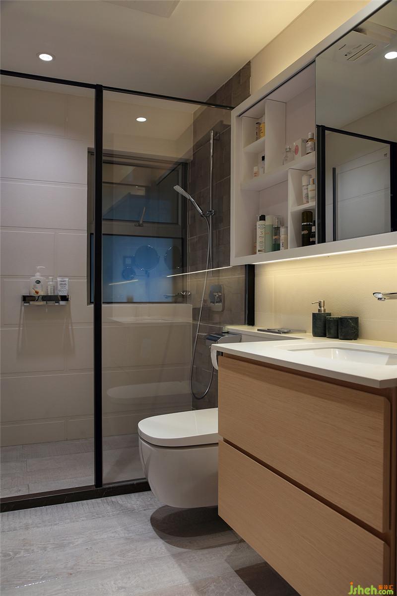 美感來(lái)源于對(duì)生活的熱愛(ài),精心布置后,就連衛(wèi)浴間都熠熠發(fā)光。特意選用的推拉式鏡柜不僅滿足了收納和照鏡子的需求,還增加了輔助光源提高亮度,讓照鏡子更加清晰,也增添了空間的氛圍。深圳裝修公司