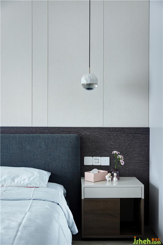 素雅的藍(lán)色、柔和的米色、偶爾出現(xiàn)的一抹黑色,奠定了主臥舒緩的主旋律。主臥最吸睛的莫過于業(yè)主鐘愛的貝殼燈,它由貝殼制作而成,當(dāng)中間的燈泡點(diǎn)亮?xí)r,燈光會(huì)透過各個(gè)貝殼折射出來,極具韻味,浪漫而溫馨。而除了照明功能外,貝殼燈平時(shí)也可視為裝飾品,令人賞心悅目。室內(nèi)設(shè)計(jì)師