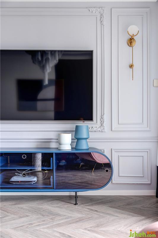 A:最喜歡電視背景墻的法式雕花和線條的整體造型,搭配得恰到好處。電視墻相對于房子面積來說寬度略顯不足,但有了線條的裝飾,反而是一個亮點。