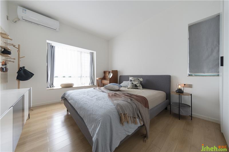 臥室延續(xù)簡潔干凈的基調(diào),原木色的地板、素白色的墻面、暖灰色的家具以及同色系的床品和窗簾,和諧簡約又不失設(shè)計感。床尾洞洞板的使用也格外有趣,不再是壓迫空間式做滿到頂?shù)囊鹿瘢且愿匀?、靈動的姿態(tài)出現(xiàn),滿足實用功能的基礎(chǔ)上,最大程度釋放空間感。