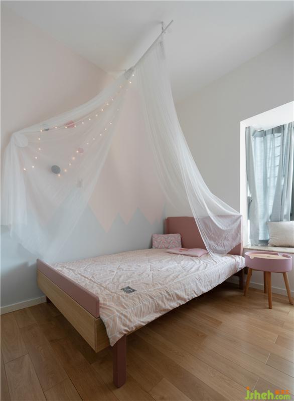 兒童房由靈活可移動的家具和色彩柔和的藝術(shù)涂料構(gòu)成,粉色和藍色搭配顯得空間溫暖而優(yōu)雅,步入空間時,又能感知其中的童趣和愉悅。