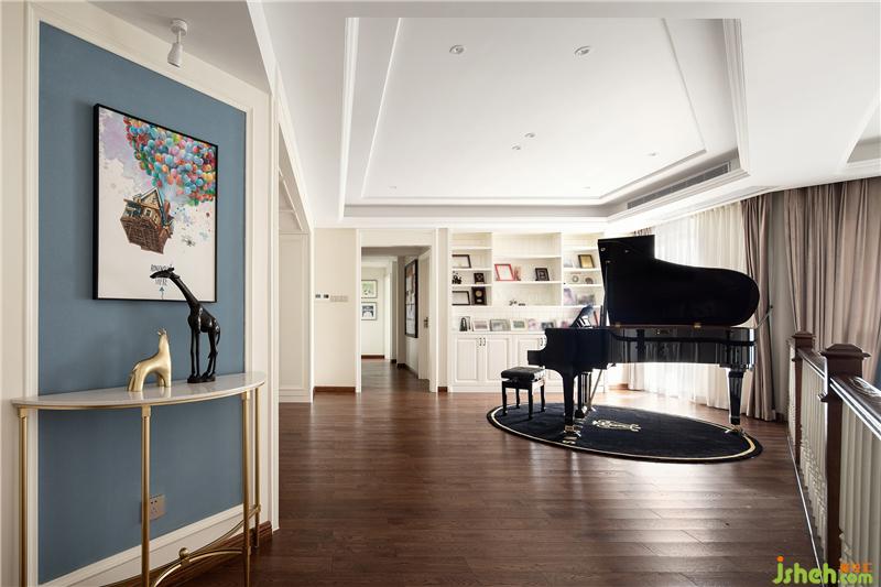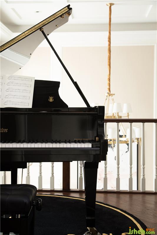 靠近挑空位的是鋼琴區(qū),黑色的三角鋼琴搭配同色的琴椅、地毯,無形中圈定了一塊兒專屬于音樂的空間。眼前是開闊、有延伸感的挑空位,側(cè)面是陽光正好、微風(fēng)吹拂的陽臺(tái),在這兒開一場小型音樂會(huì),真是再適合不過了!