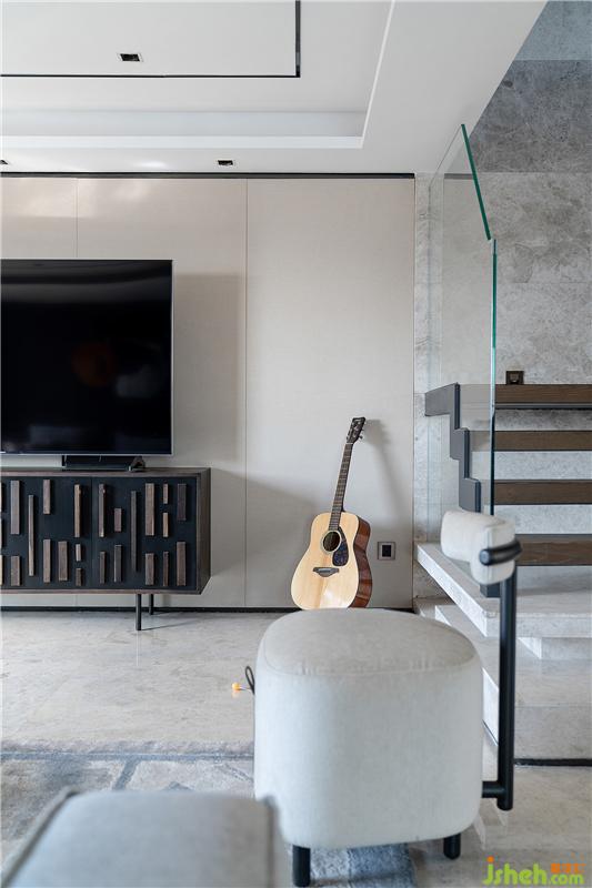家里有兩只喵喵,為了讓他們有更寬敞、安全的玩耍區(qū)域,半高的封閉式成品柜成為了收納的首選。一眼望去,公共區(qū)域是敞亮、通透、無拘束的。背景墻一面保留原有的暖米色硬包,另一面則換成了深色的木制石紋護墻板,搭配暖灰色布藝沙發(fā)、拼色抽象派地毯、深色木制家具等,流暢的線條比例與色塊組合,展現(xiàn)出業(yè)主卓爾不凡的藝術品位。