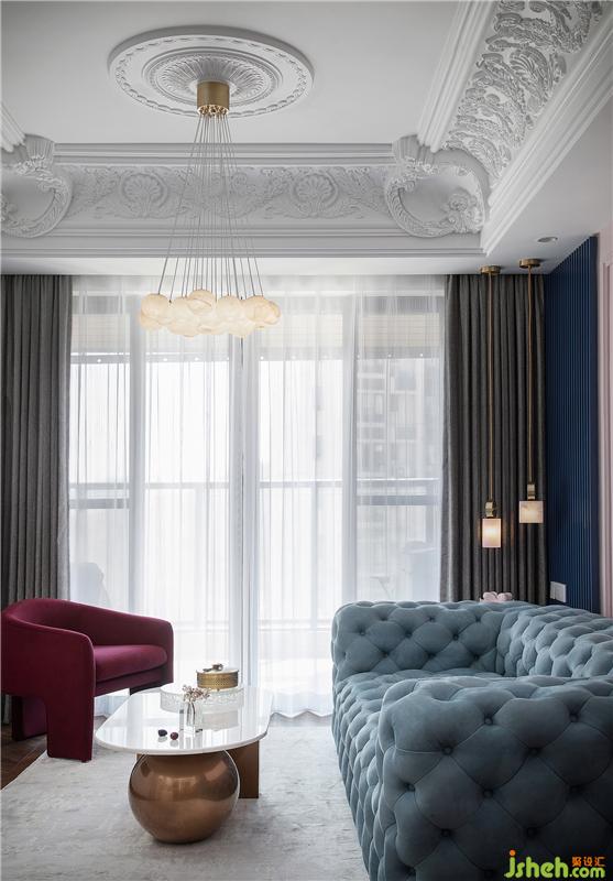以烤漆壁爐的形式取代傳統(tǒng)邊柜,造型上與背景墻線條元素相呼應(yīng),更具視覺(jué)延伸感,為生活增添了儀式感。陳設(shè)的三兩組軟裝使空間靈動(dòng)而優(yōu)雅,隨性打開(kāi)的書(shū)本恰好點(diǎn)亮了室內(nèi)的文藝氛圍。仿佛還原了與家人聊天、品茶、閱讀的生活情境,在空間藝術(shù)韻律的熏陶下,演繹極具個(gè)性的法式輕奢風(fēng)情。
