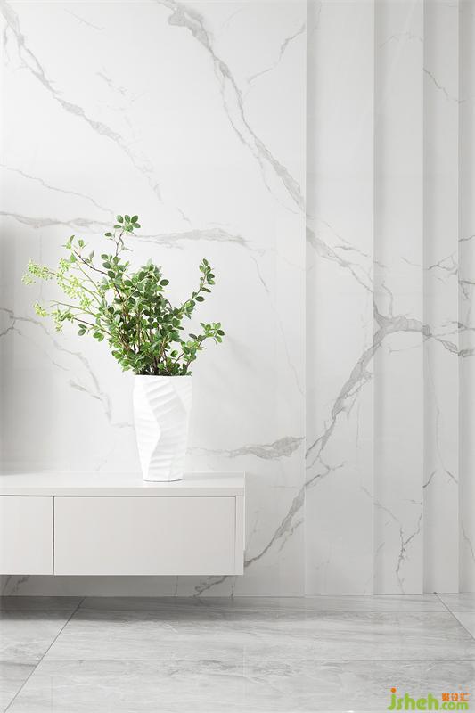 電視背景墻以大理石紋磚依次疊加并重組線條感為設(shè)計(jì)亮點(diǎn)。紋路自然延展、右側(cè)恰好形成梯度線條,與定制的條形電視柜組合成立體的空間。清新的色彩搭配讓室內(nèi)盡顯輕松、靜謐,小瓶綠植更讓空間充滿舒適的居家氛圍。