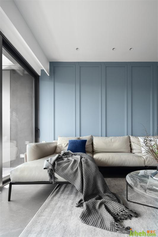 霧霾藍(lán)色護(hù)墻板搭配奶茶色皮質(zhì)L型沙發(fā)、大理石+鐵藝的組合茶幾,每一處都透露著精致與時(shí)尚。不想辜負(fù)大好日光,暫時(shí)還未懸掛窗簾,但預(yù)留了窗簾盒位置,便于后期加設(shè)窗簾。