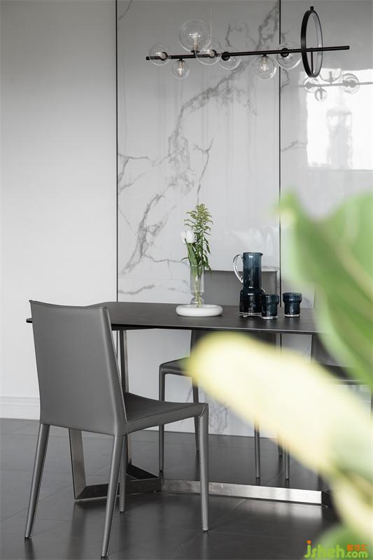 透過大面積落地窗迎接自然光入住,光、影、材的相互映照,視覺上越發(fā)和諧,營造理性內(nèi)斂的奢華感。以高級灰為主基調(diào),搭配紋理清晰的木飾面餐邊柜,整體干凈素雅、通透高級。