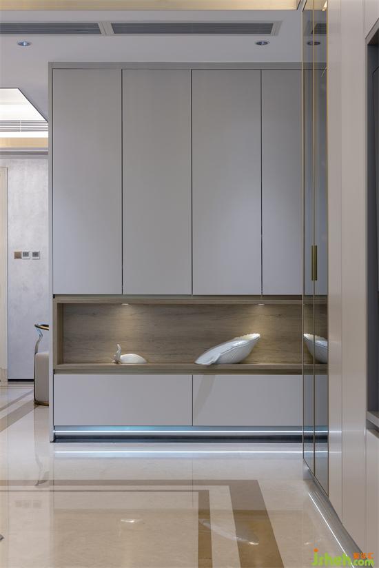 原本厚重的大理石電視背景墻,搖身一變?yōu)闈M墻收納柜,收納自然不在話下!深圳家裝設計雙側茶色玻璃鏡面柜門簡約而不簡單,裝點墻面,微透櫥窗內擺件,高雅貴氣。平板式按壓柜門使得空間更加規(guī)整干練,沒有一絲拖泥帶水,豪宅就該這么干凈利落!