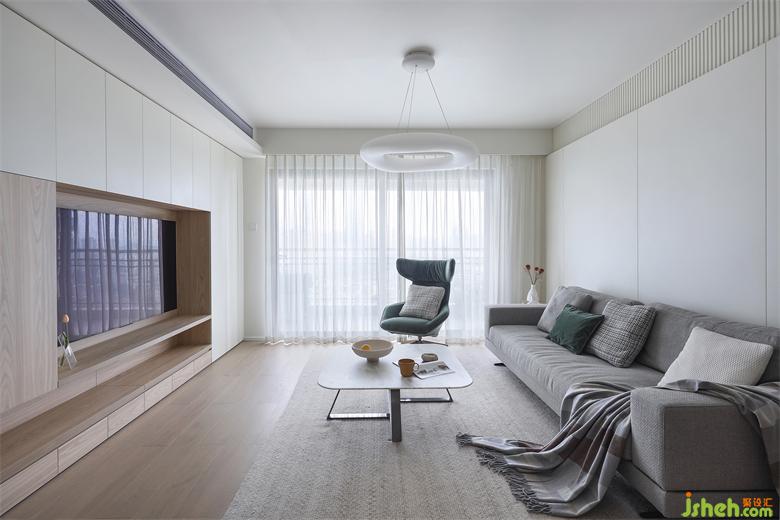 整個客廳硬裝部分以至簡純潔的暖白色調(diào)為主,軟裝部分加入了多層次高級灰元素。深圳家裝設計整個空間雖不是驚艷一時的,卻是能歷久彌新、耐看耐用、經(jīng)久不衰、永不過時。