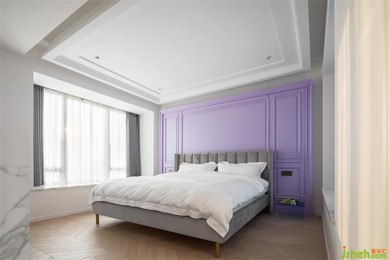 接下來就到空間的另一個重頭戲了——主臥!誰看了不會夸一句,這主臥門的設計也太有儀式感了吧?!定制的到頂黑色雙開木門+金屬拉手,天花設計了X型燈光,雙手推開門的那一刻,仿佛跨入了另一個世界。